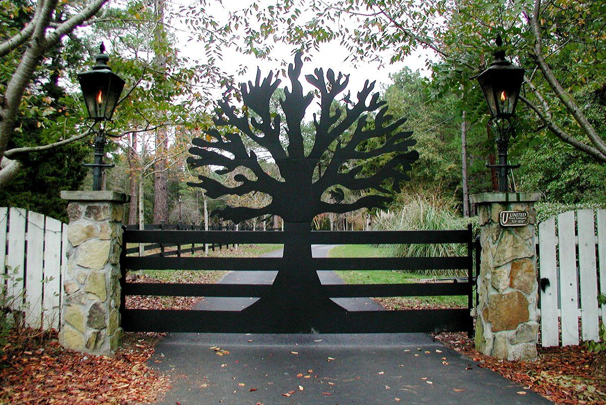 Here at United Fence Company, we weld, build and design metal gates from scratch. We do not work off of a set template or a blueprint. We create fences based on the needs and wishes of the client. Some want a functional and effective gate, and others may want one that combines those attributes with something more artistic or unique. Our gates are extremely secure, so you can control who has access to your gate and when.